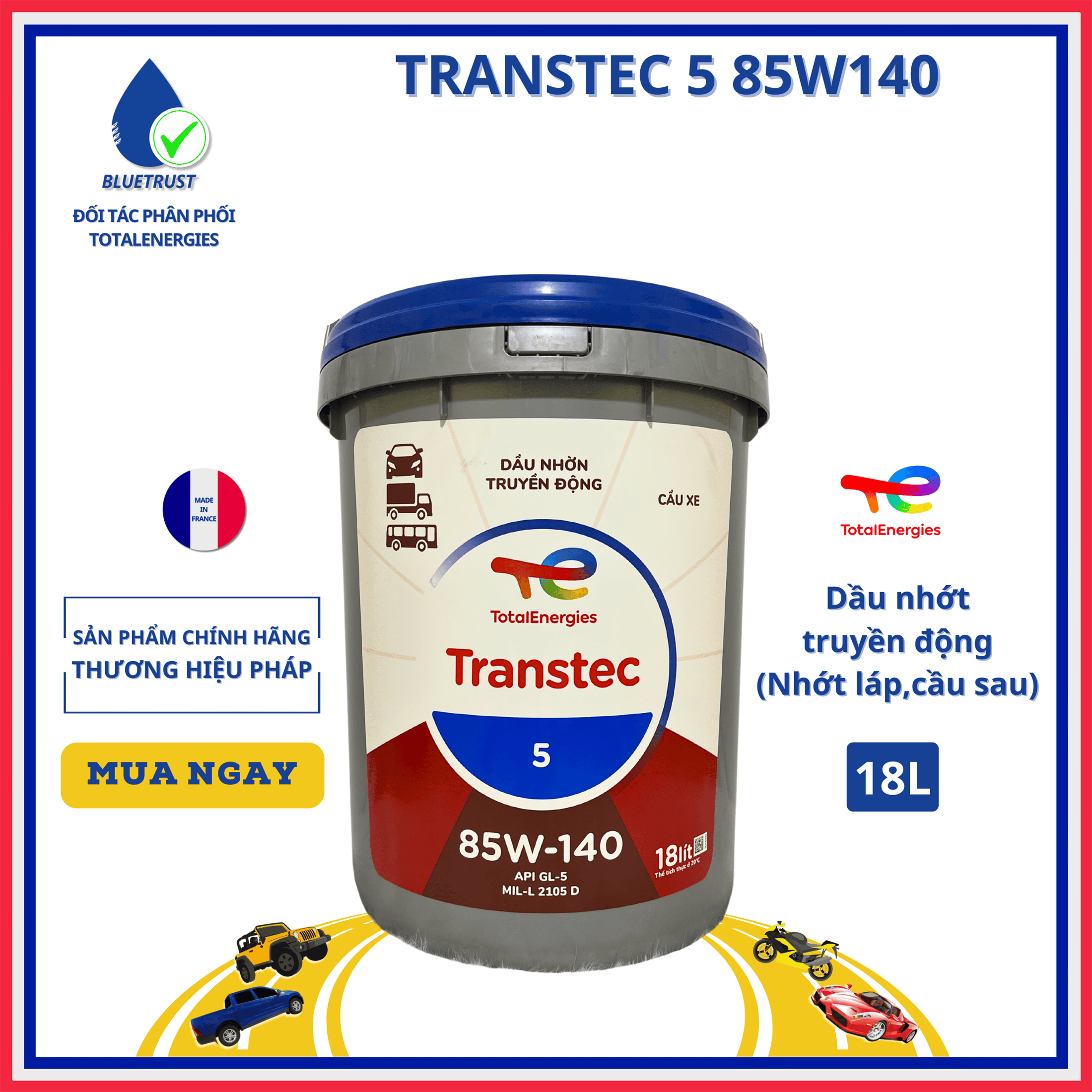 Đánh giá Dầu nhớt truyền động, nhớt láp, cầu sau TOTAL TRANSTEC 5 85W140 – 18 Lít
