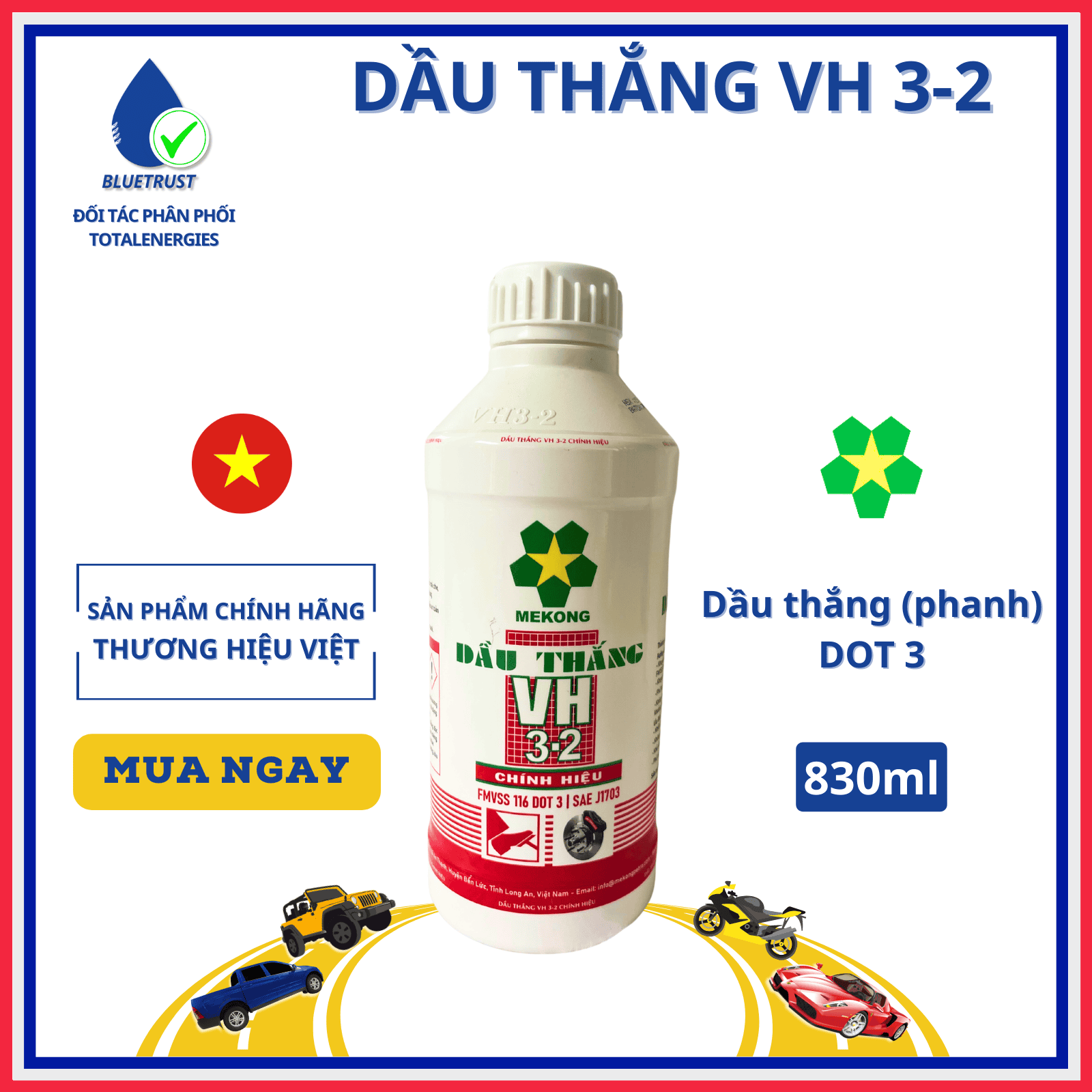 Mekong VH 3-2 là loại dầu thắng (dầu phanh) tổng hợp đạt tiêu chuẩn quốc tế, được tinh chế từ dầu gốc Glycol Ethers, có độ nhớt thích hợp, độ bay hơi thấp, không ăn mòn kim loại và các thành phần trên hệ thống phanh. Sản xuất trên dây chuyền khép kín và hiện đại, không gây ra hiện tượng túi khí, bó kẹt hoặc trương nở Cuppen, kết hợp với hệ phụ gia chịu tải, chịu lực cao nhằm đáp ứng cho hệ thống phanh luôn vận hành an toàn và ổn định