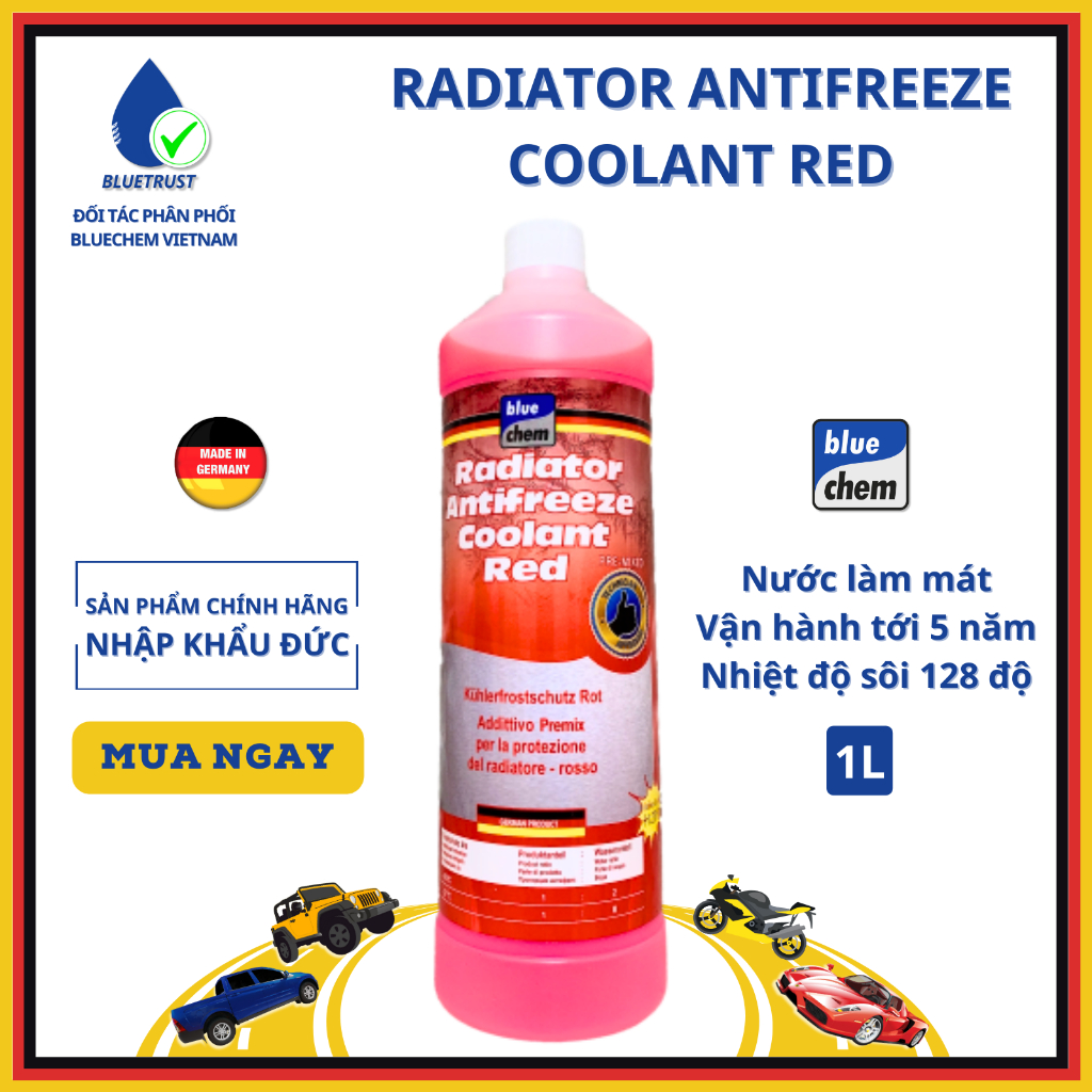 Đánh giá Nước Làm Mát Màu Hồng Chống Đông -37°C BLUECHEM – RADIATOR ANTIFREEZE COOLANT RED – 1 Lít